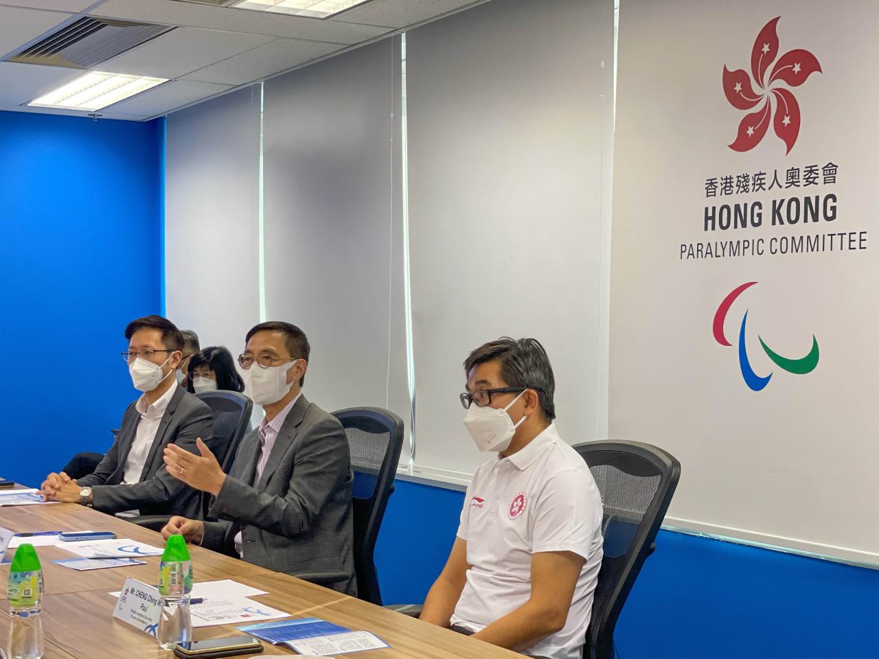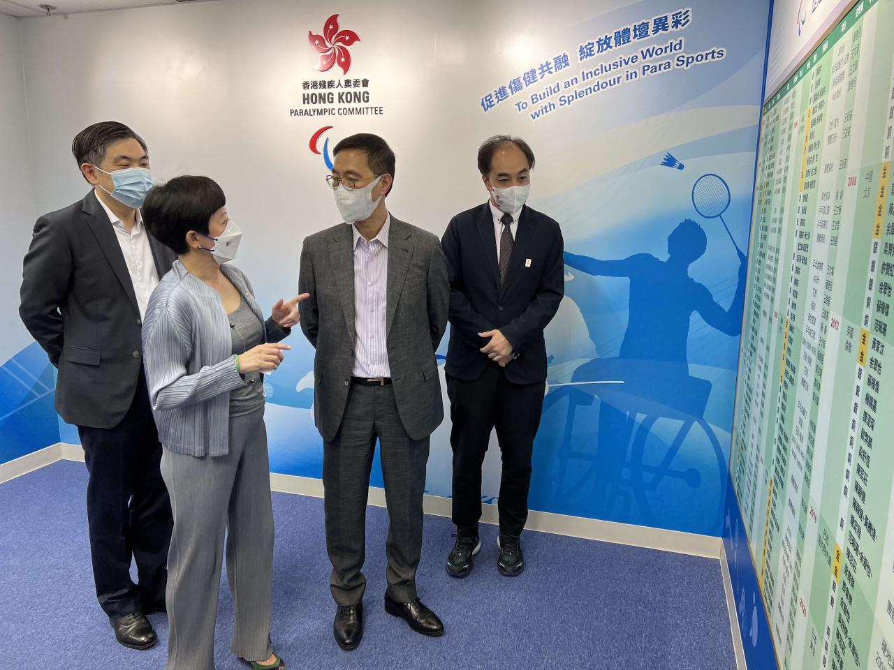 Accompanied by Mrs. Jenny Fung Ma Kit Han BBS JP, President of Hong Kong Paralympic Committee and Board of Directors, Mr. Yeung was briefed to learn about the work of the Committee since its establishment on 1 April this year, and to discuss how to collaborate in promoting Para sports in Hong Kong, as well as in assisting Para athletes in transition of new roles, leading a sustainable career development after retirement.