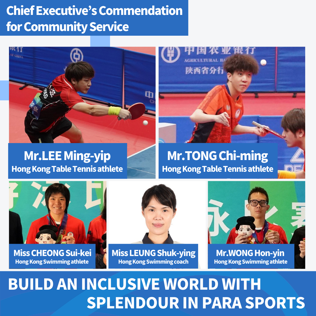 Congratulations to all Para athletes and coaches awarded honours or commended in recognition of their outstanding achievements in Para sports by HKSAR.