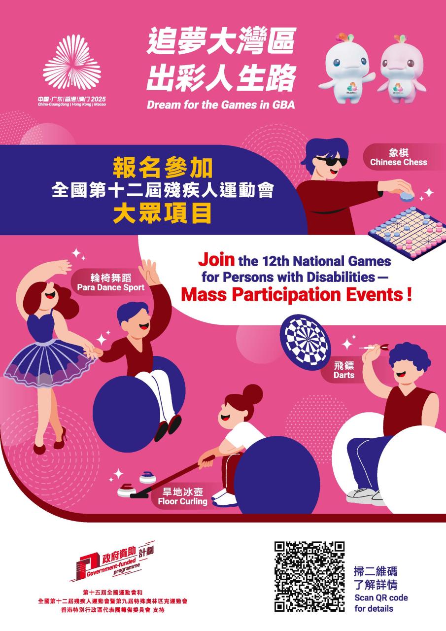 2025-05-27 全國第十二屆殘疾人運動會大眾項目香港地區選拔即將展開,詳情請參閱以下,了解更多。https://www.lcsd.gov.hk/tc/ngames/2025/competitions/participation/disabilities.html** 由於輪椅舞蹈報名人數低於集訓人數,因此無需舉行輪椅舞蹈選拔賽。 最新消息