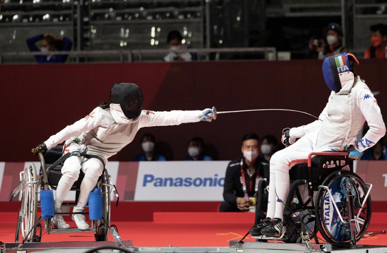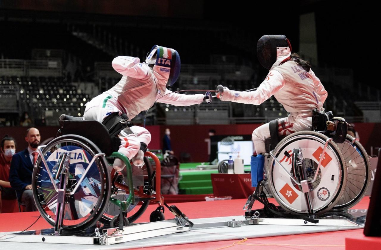 截肢、脊髓損傷和腦癱的運動員有資格參加花劍、重劍和佩劍項目。 他們的輪椅在比賽期間被固定在地板上。